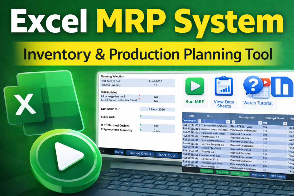 This free version of the Excel MRP System gives you a powerful starting point to plan materials, manage stock, and understand what to order and when β€” without complex software.