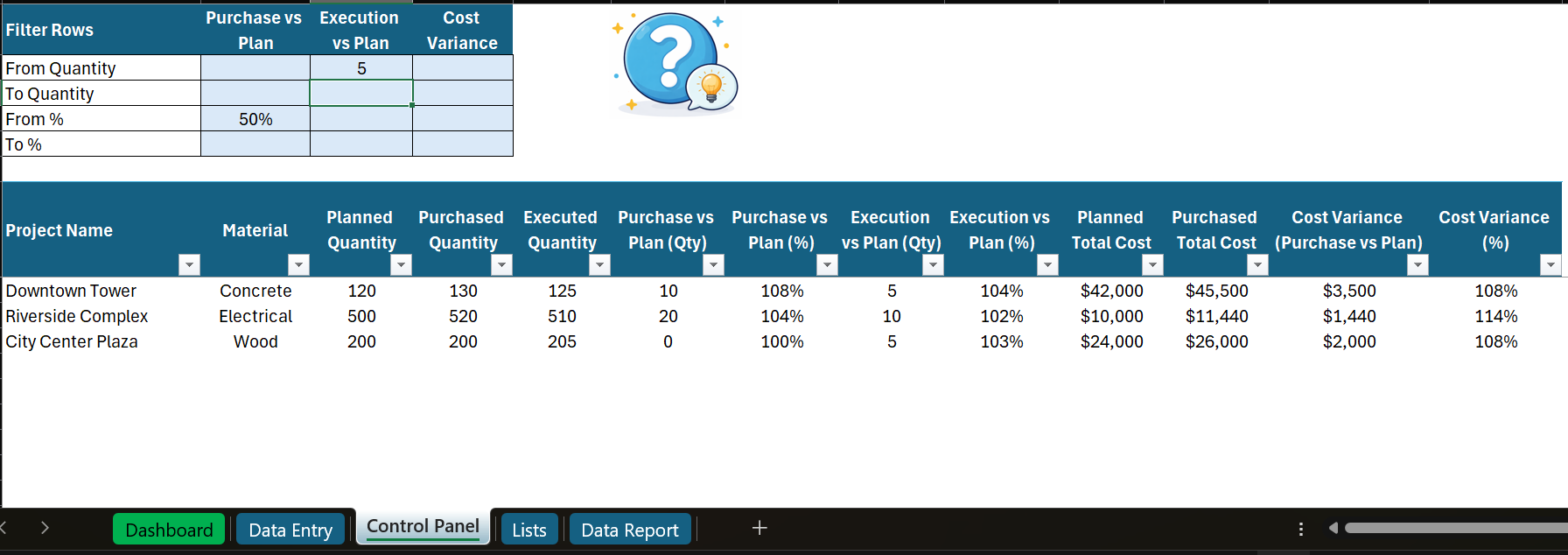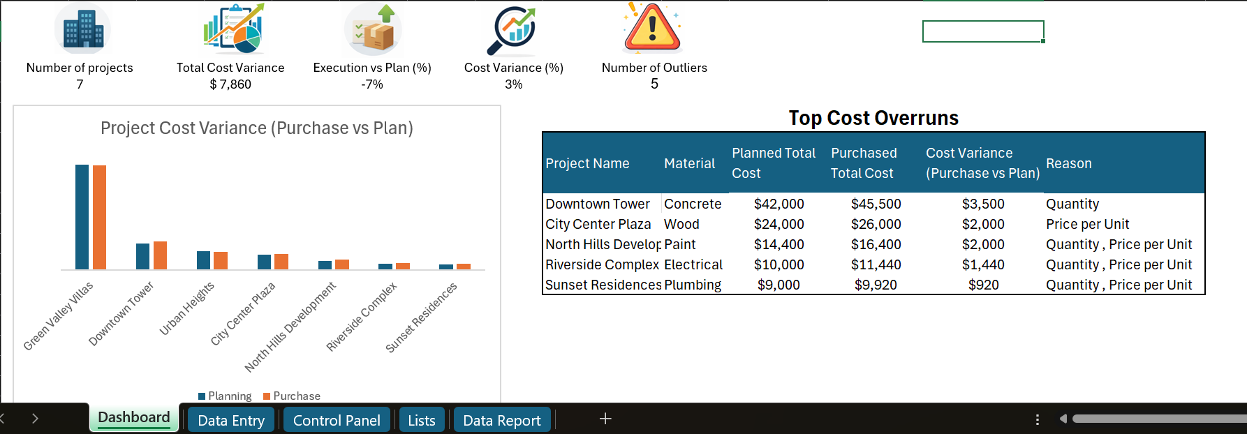 Take control of your project costs with this powerful Excel template. Track planning, purchasing, and execution in one place, identify cost overruns instantly, and gain full visibility over your projects.
