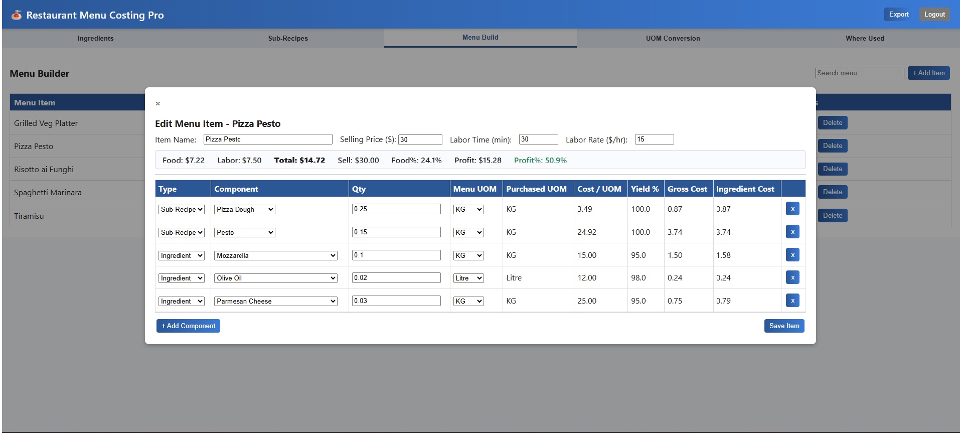Your ingredient list is the core of your costing engine.